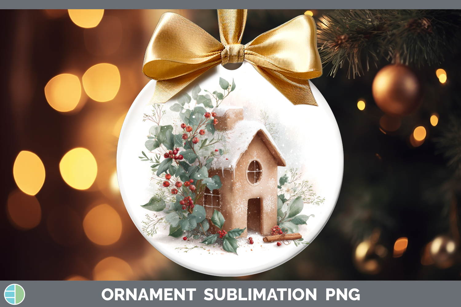 Gingerbread House Christmas Botanicals Ornament Sublimation