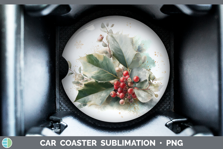 Holly Christmas Botanicals Car Coaster Sublimation Design