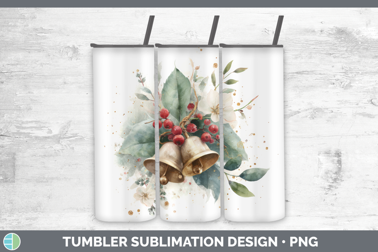 Jingle Bells Christmas Botanicals Tumbler Sublimation Design