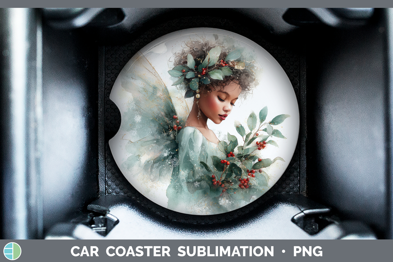 Angel Christmas Botanicals Car Coaster Sublimation Design