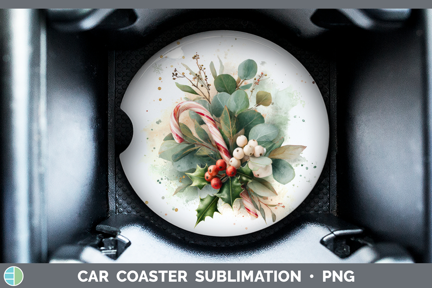 Candy Cane Christmas Botanicals Car Coaster Sublimation Desi