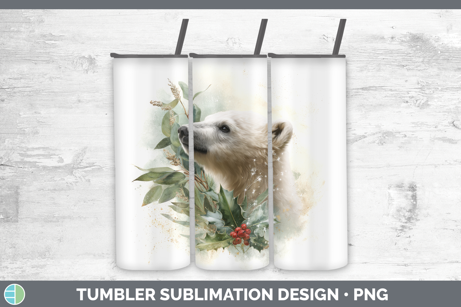 Polar Bear Christmas Botanicals Tumbler Sublimation Design