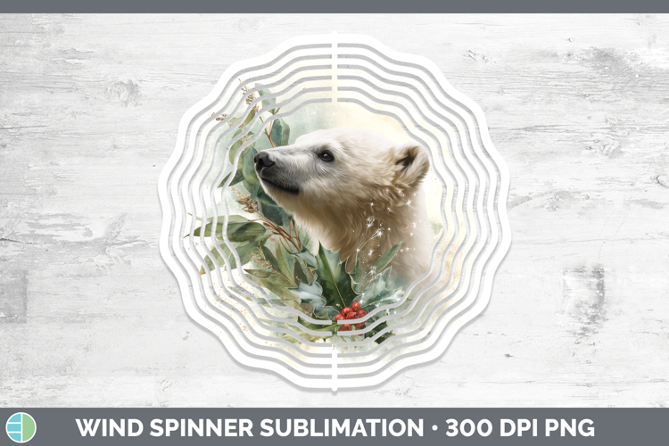 Polar Bear Christmas Botanicals Wind Spinner Sublimation Des