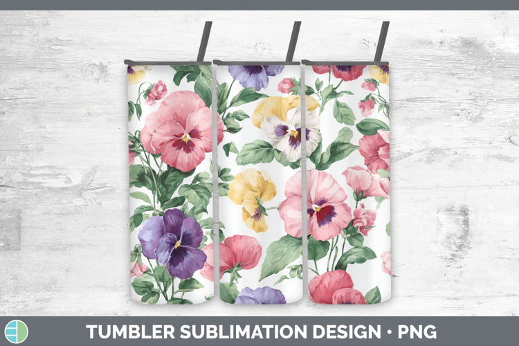 Pansy Flowers 02 Pastel Pattern Tumbler Sublimation Design