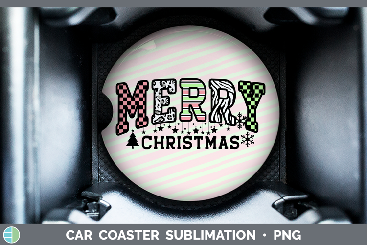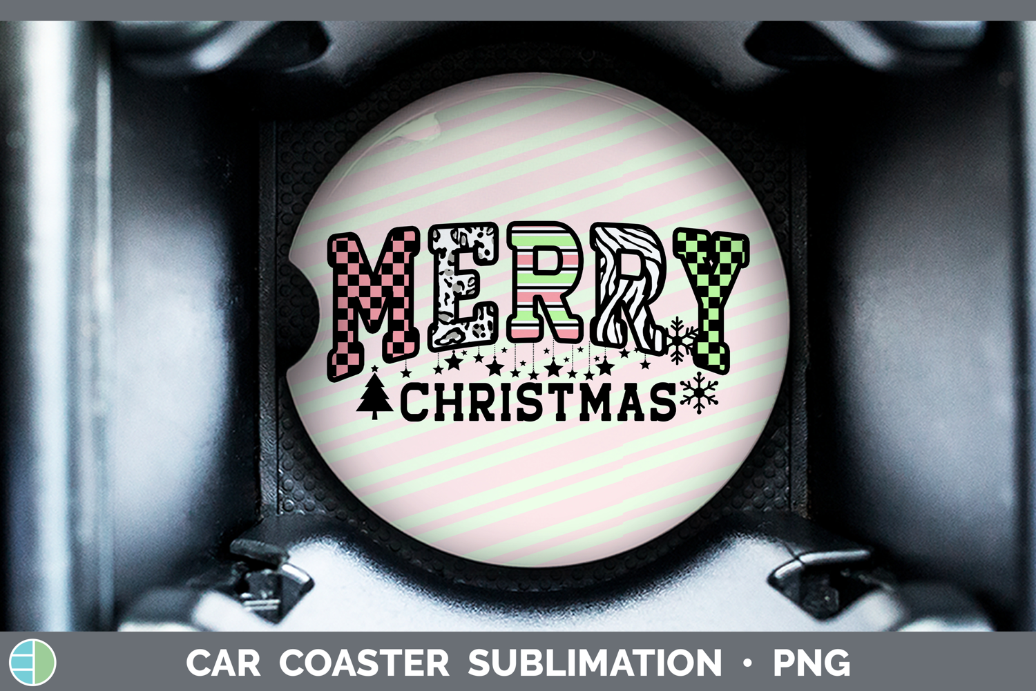 Merry Christmas Trendy Car Coaster Sublimation Design