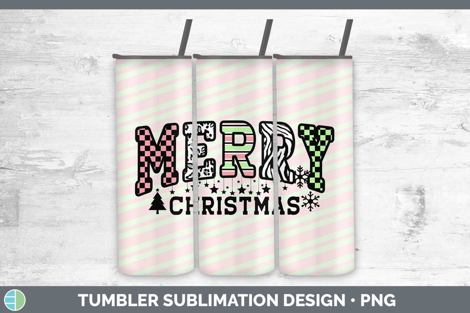 Merry Christmas Trendy Tumbler Sublimation Design