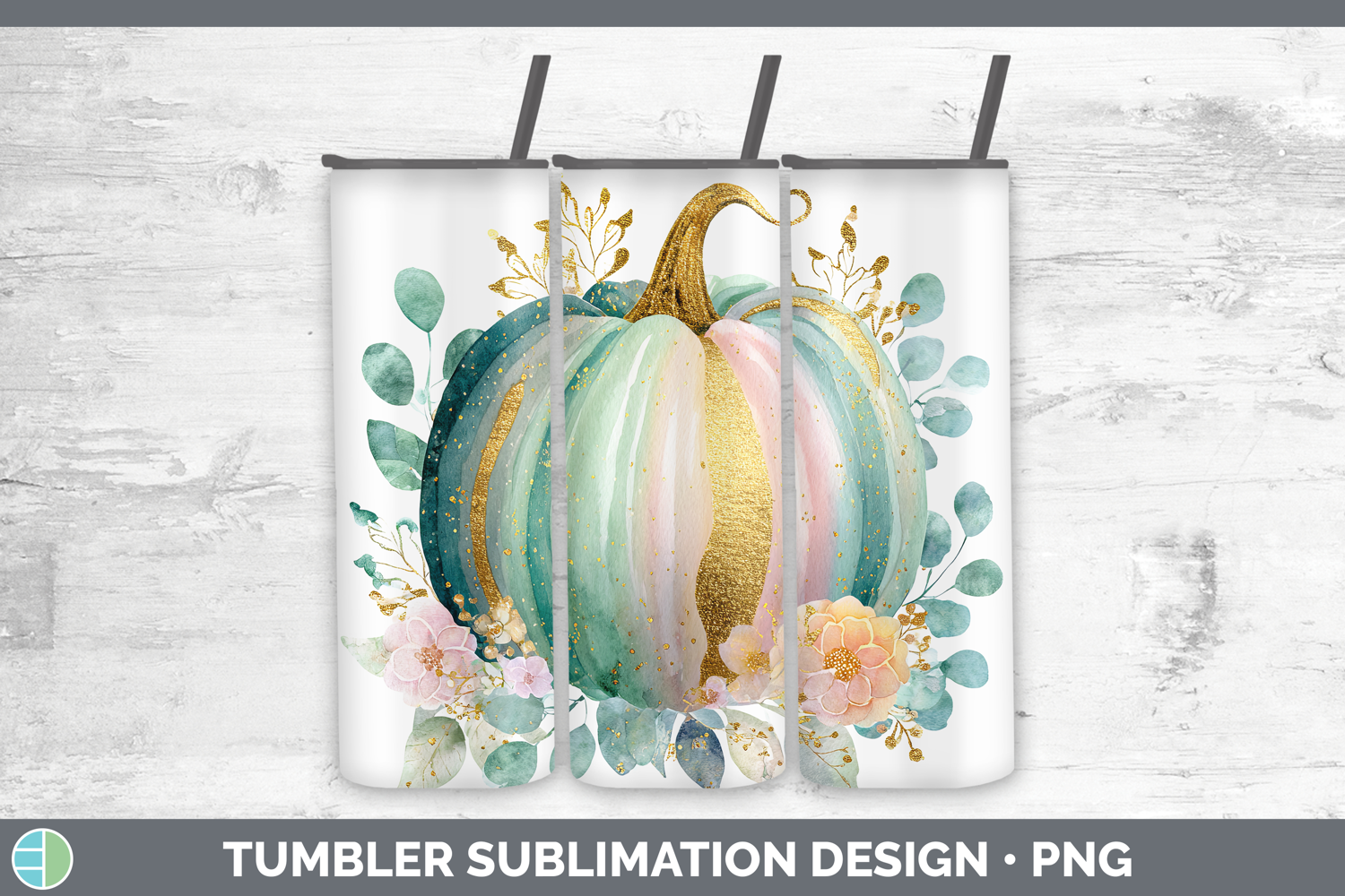 Teal Pumpkin Autumn Pastel Brush Strokes Tumbler Sublimation