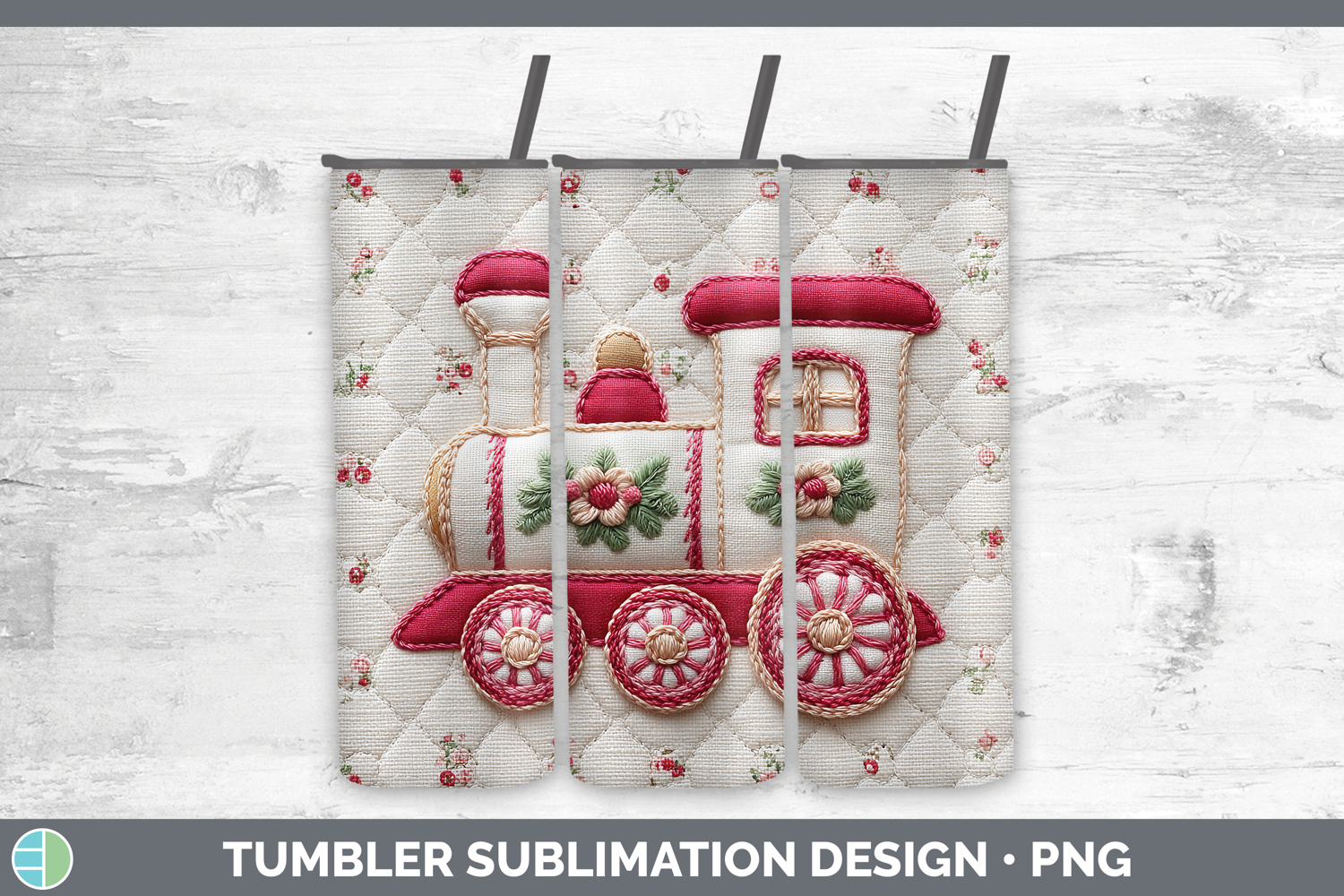 Train Christmas Patch Tumbler Sublimation Design