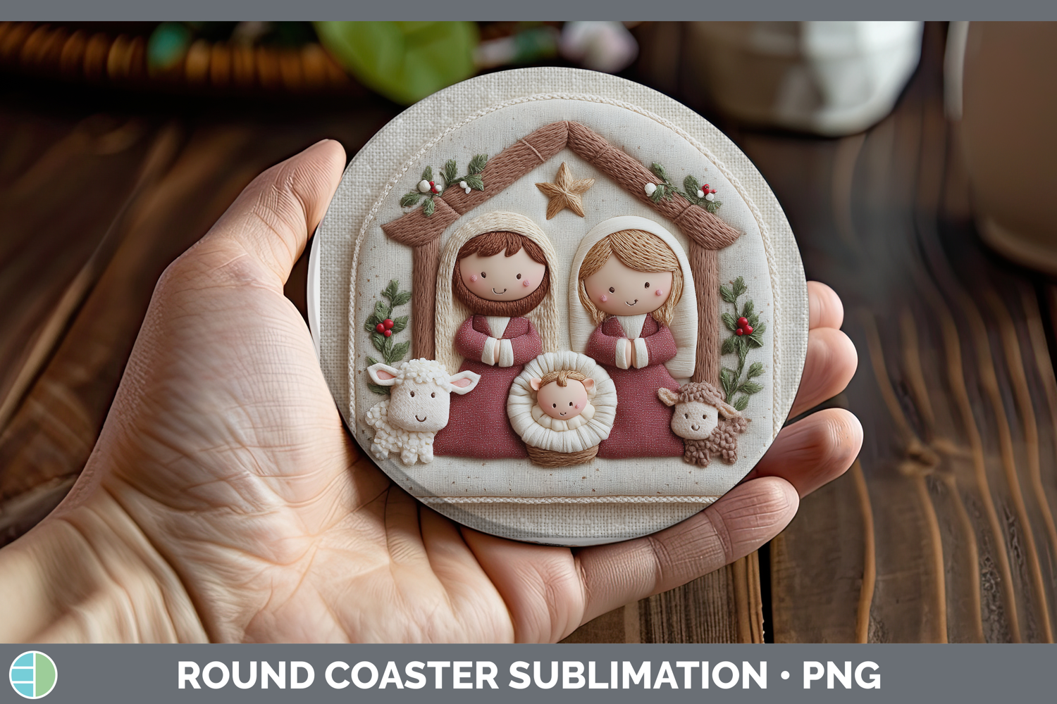 Nativity Christmas Patch Round Coaster Sublimation Design