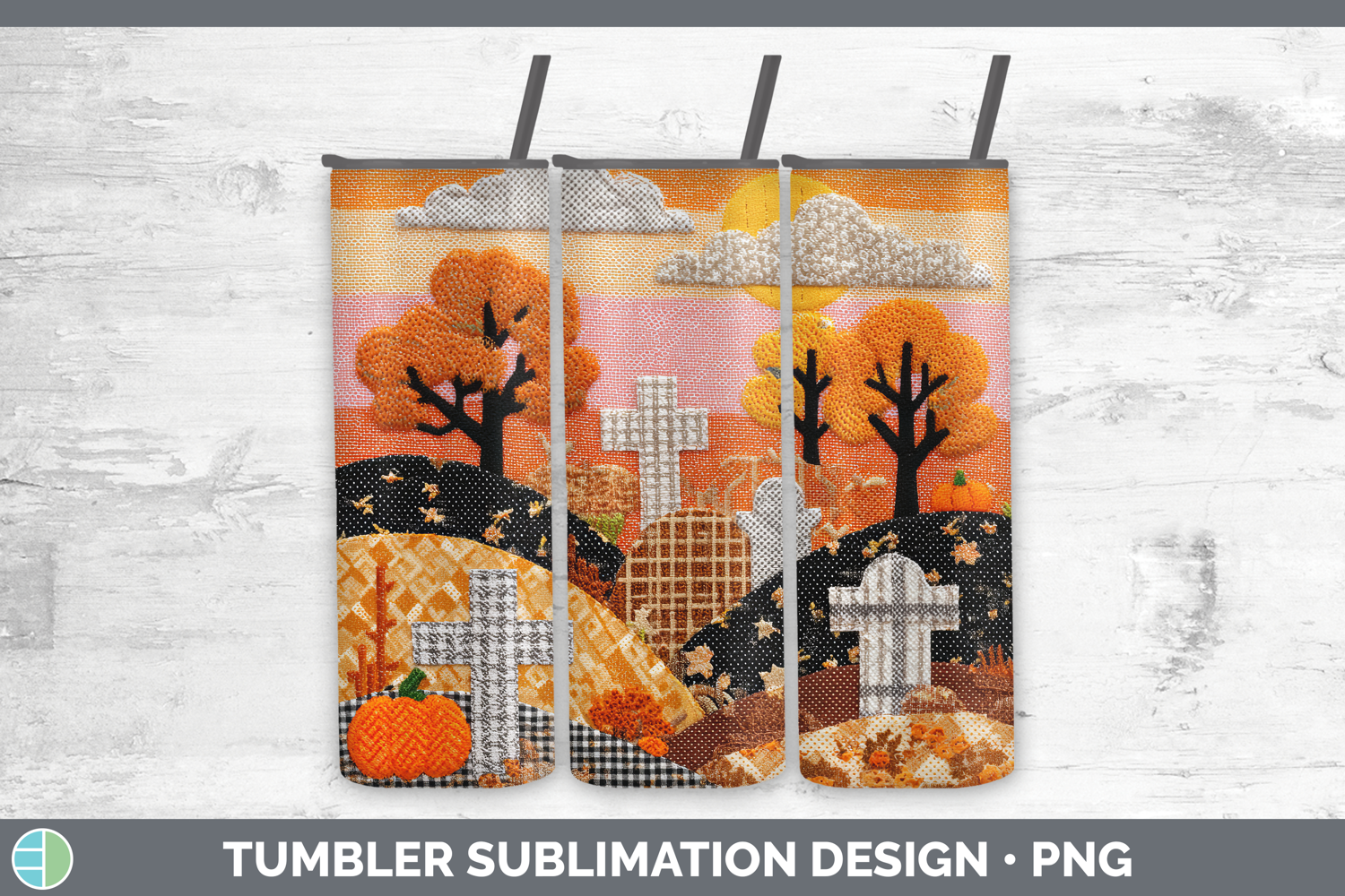 Similar Design Products to Graveyard Halloween Patchwork Tumbler Sublimation Design