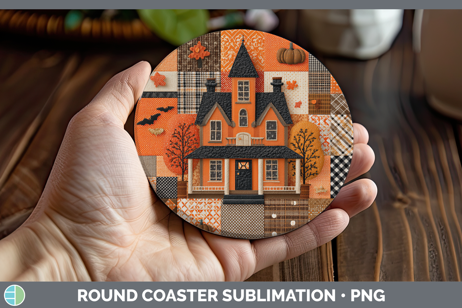 Haunted House Halloween Patchwork Round Coaster Sublimation