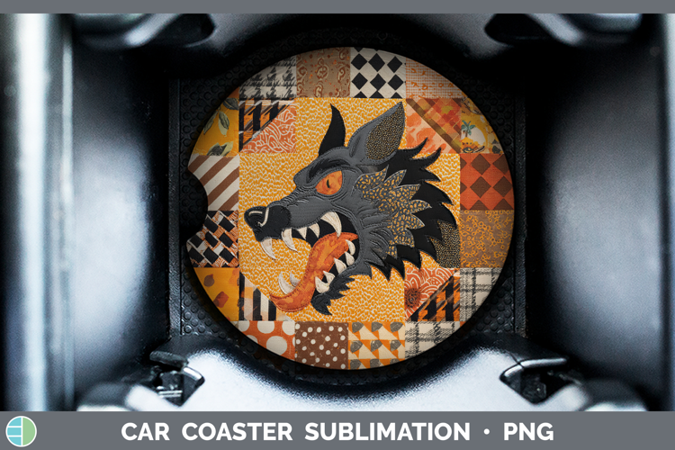 Werewolf Halloween Patchwork Car Coaster Sublimation Design