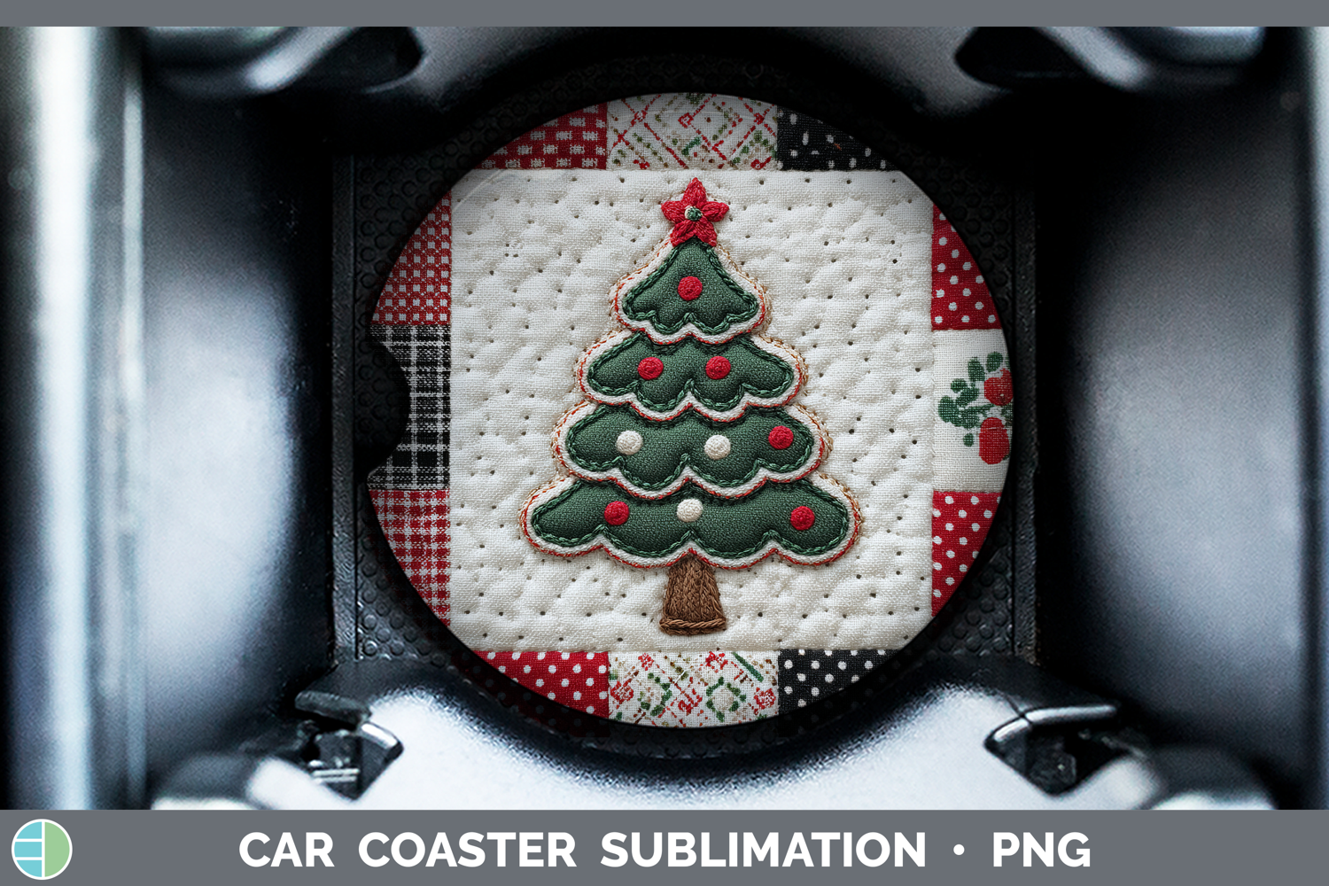 Tree Christmas Quilted Patchwork Car Coaster Sublimation Des