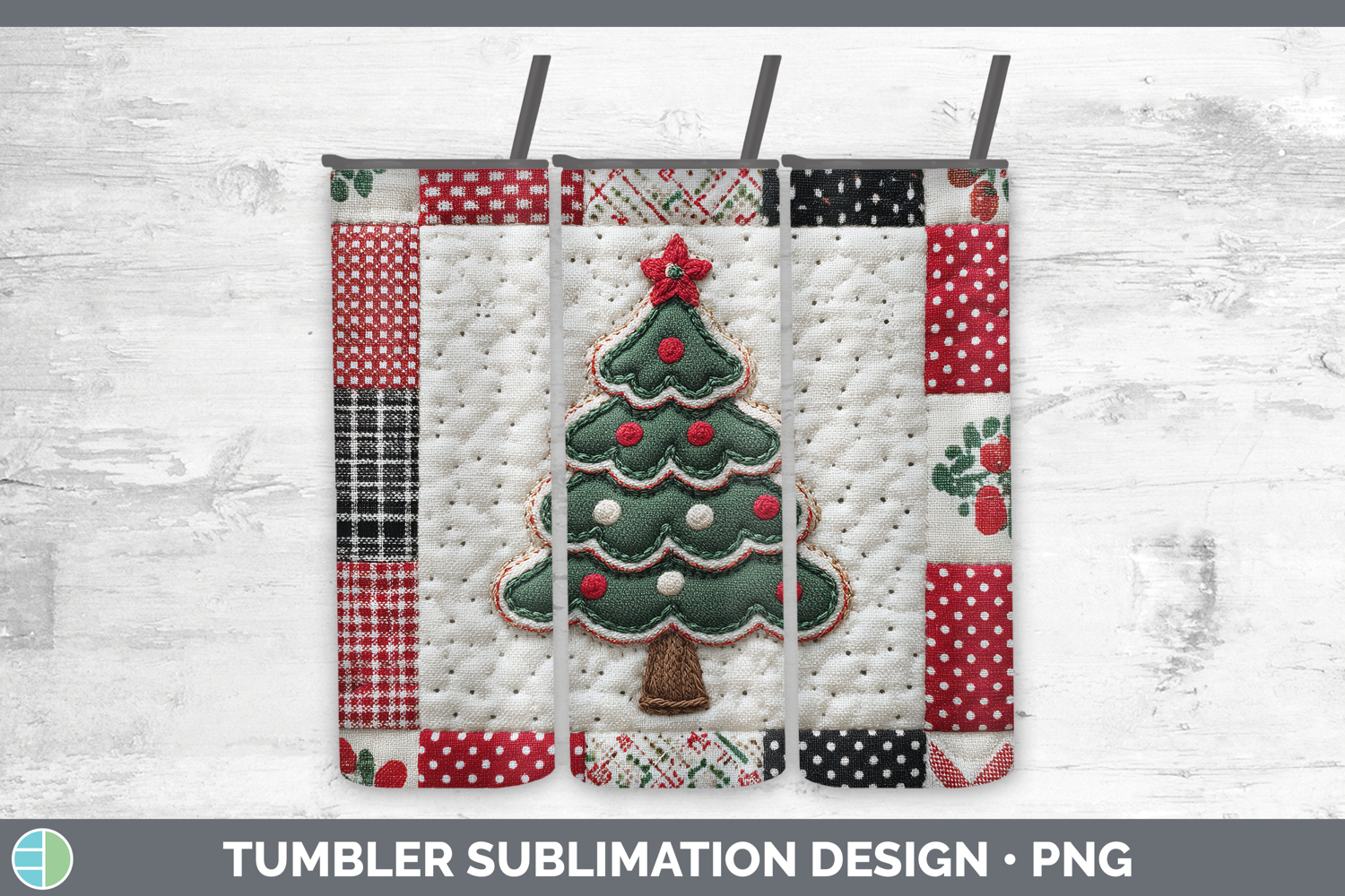 Tree Christmas Quilted Patchwork Tumbler Sublimation Design