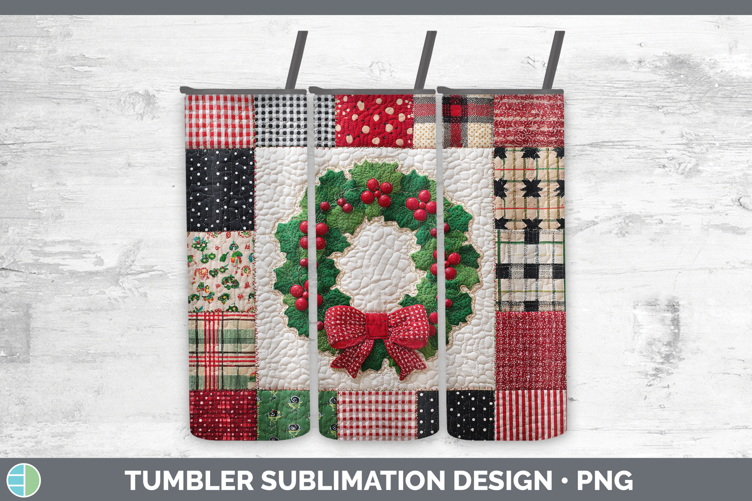 Wreath Christmas Quilted Patchwork Tumbler Sublimation Desig