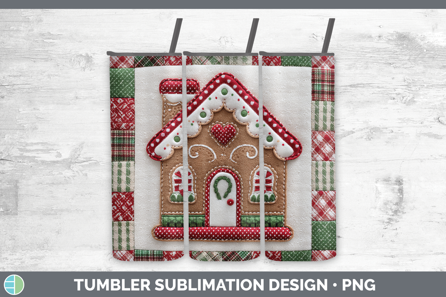 Gingerbread House Christmas Quilted Patchwork Tumbler Sublim