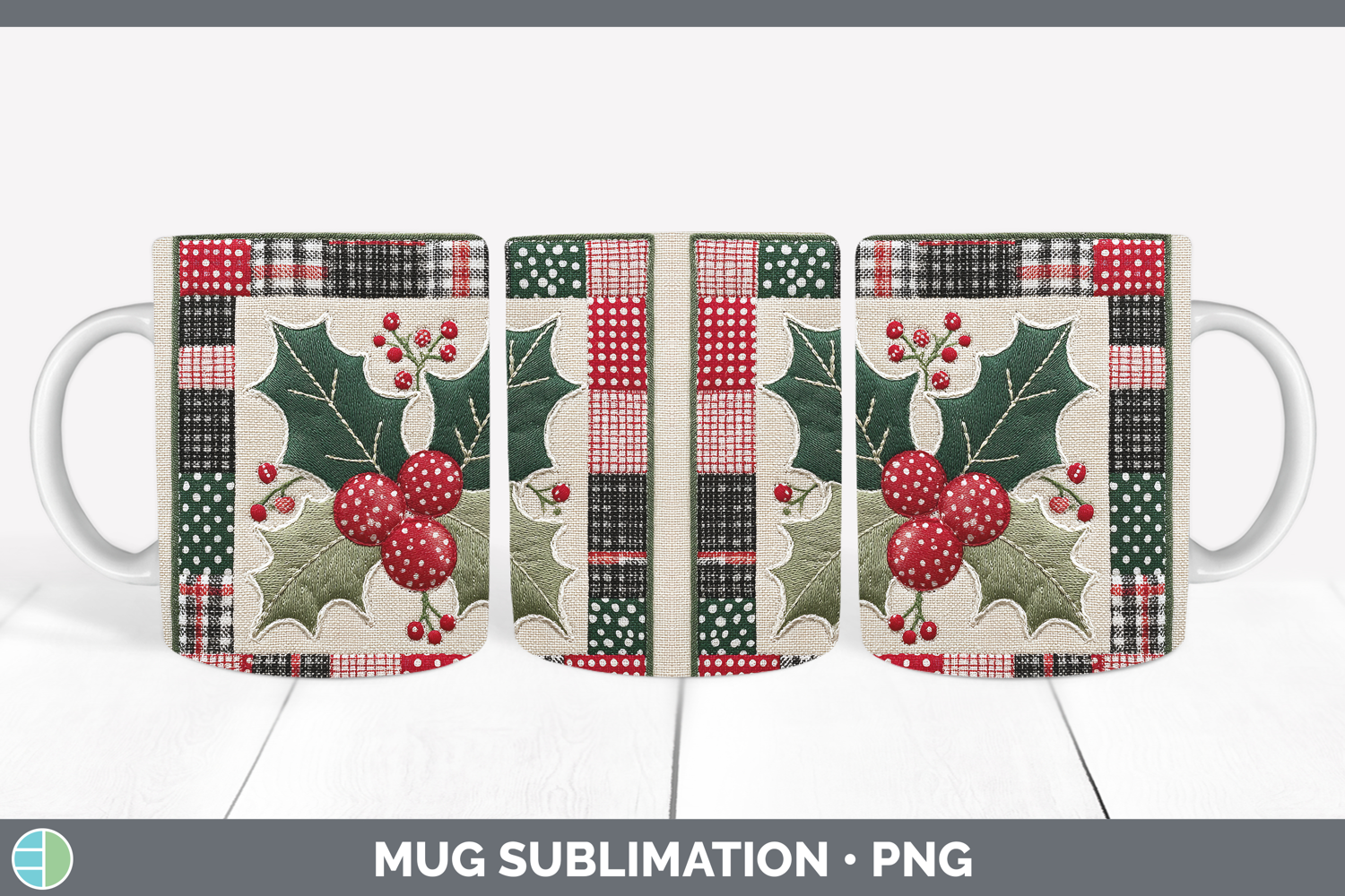 Holly Christmas Quilted Patchwork Mug Wrap Sublimation Desig