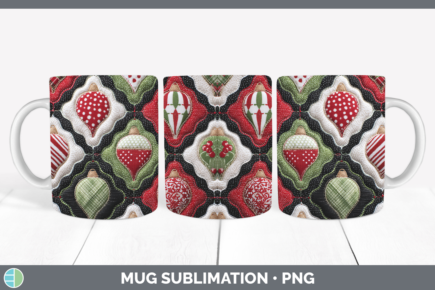 Similar Design Products to Ornaments Christmas Quilted Patchwork Mug Wrap Sublimation D