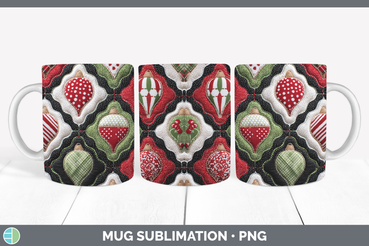 Ornaments Christmas Quilted Patchwork Mug Wrap Sublimation D