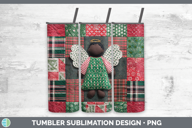 Angel Christmas Quilted Patchwork Tumbler Sublimation Design