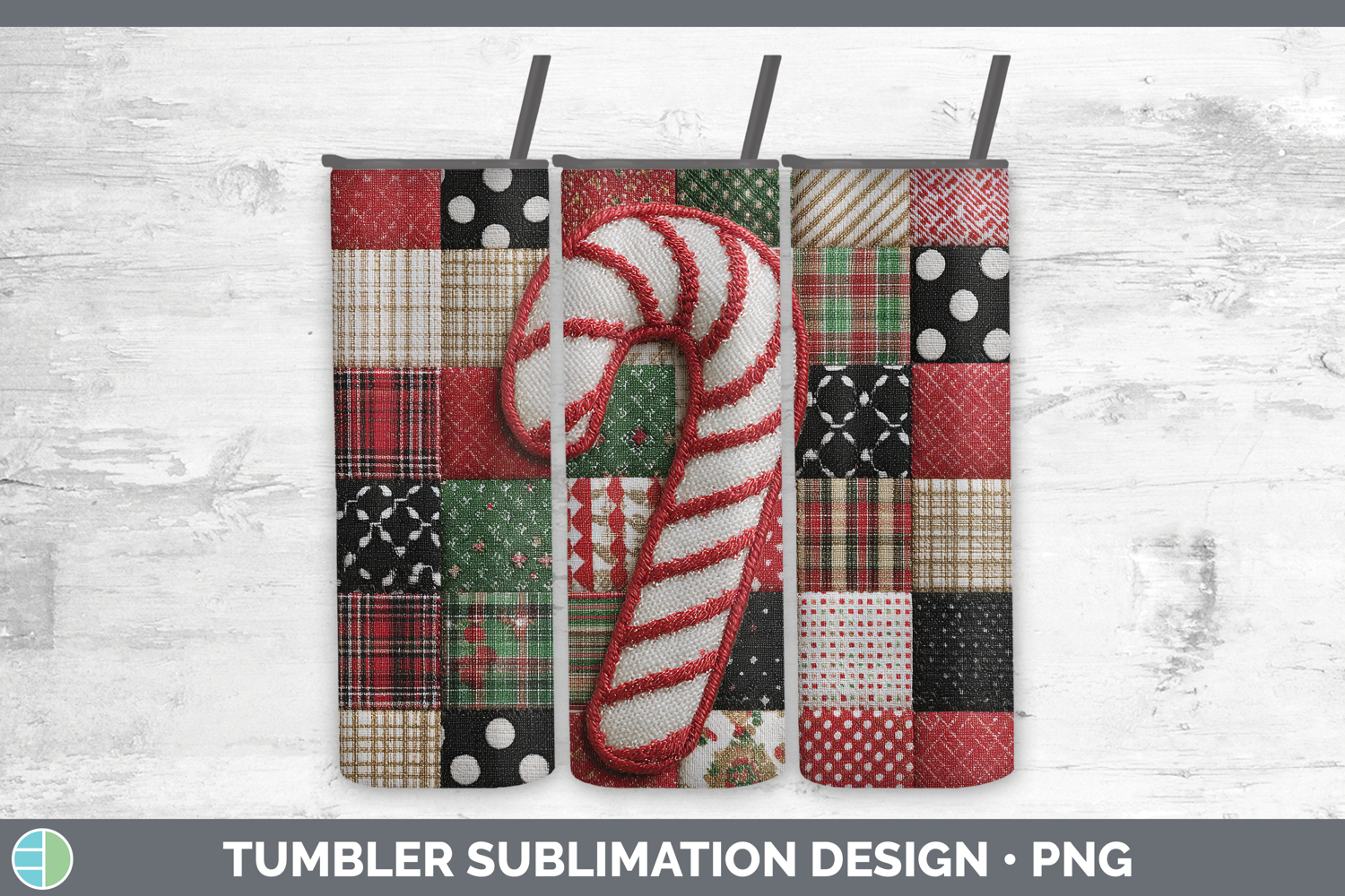 Candy Cane Christmas Quilted Patchwork Tumbler Sublimation D