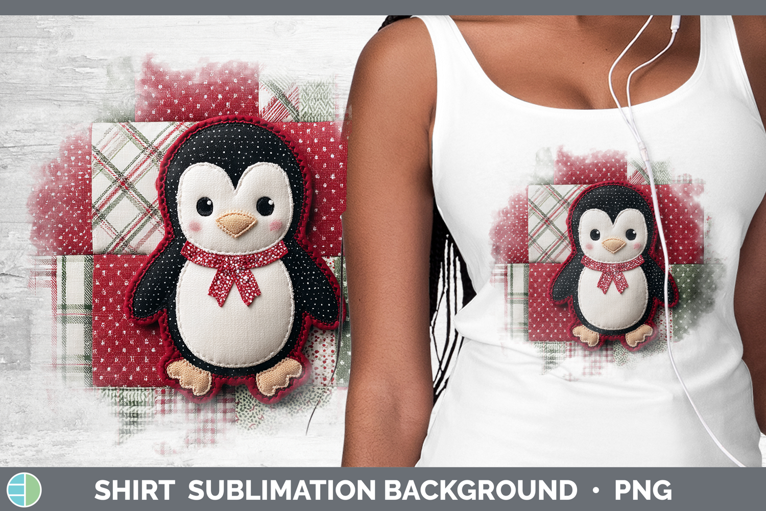 Penguin Christmas Quilted Patchwork Shirt Sublimation Design