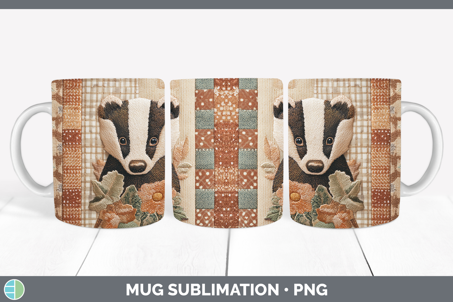 Badger Woodland Quilted Patchwork Mug Wrap Sublimation Desig