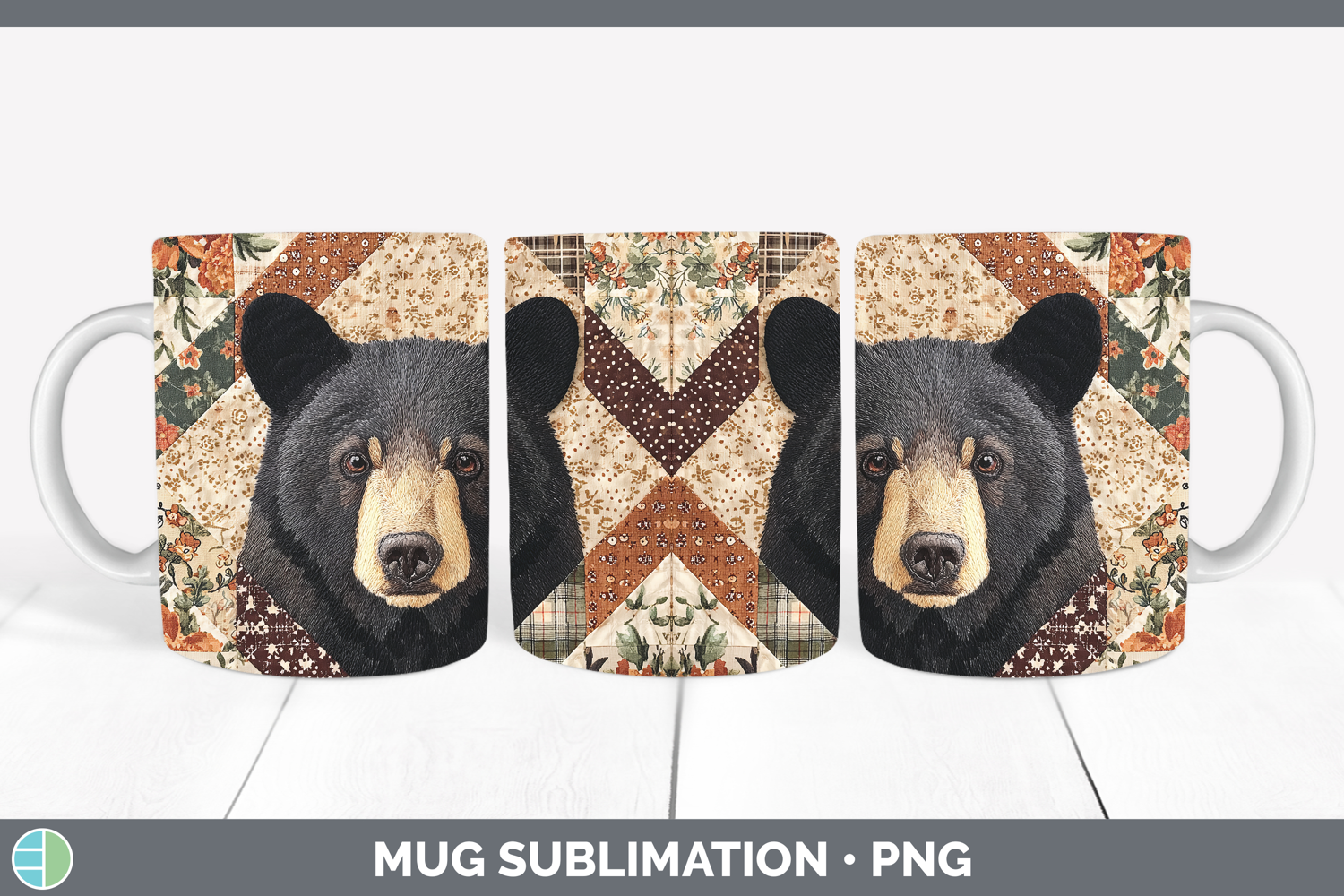 Similar Design Products to Black Bear Woodland Quilted Patchwork Mug Wrap Sublimation D