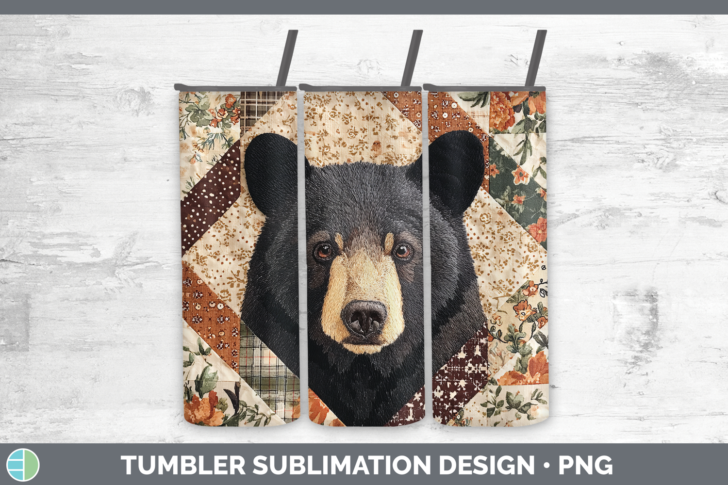 Similar Design Products to Black Bear Woodland Quilted Patchwork Tumbler Sublimation De