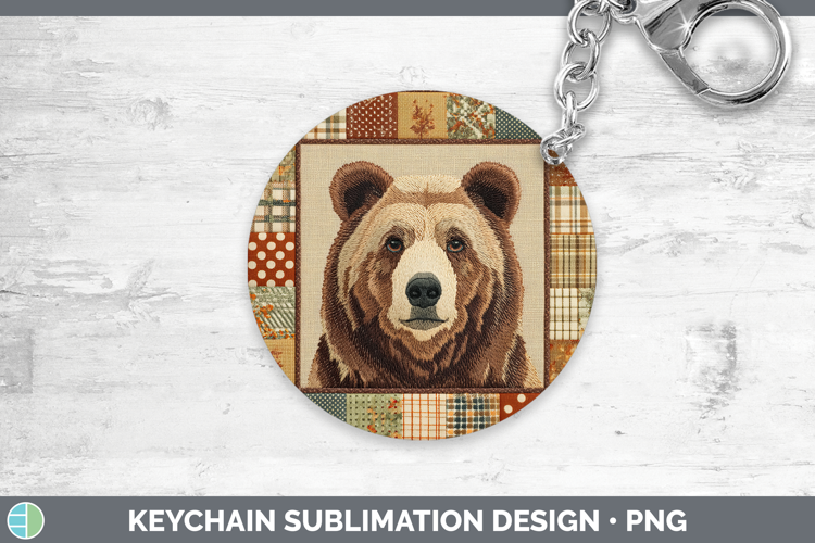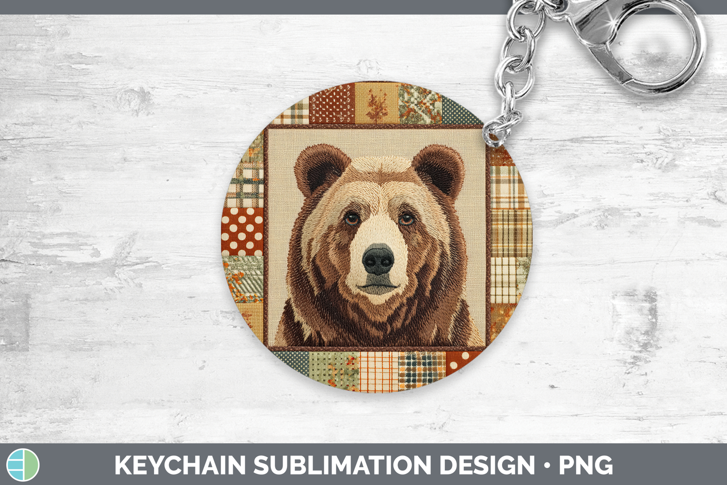 Grizzly Bear Woodland Quilted Patchwork Keychain Sublimation