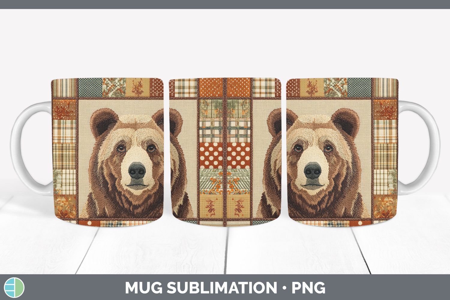 Similar Design Products to Grizzly Bear Woodland Quilted Patchwork Mug Wrap Sublimation