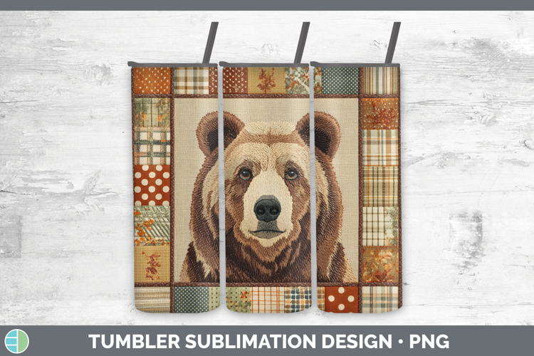 Grizzly Bear Woodland Quilted Patchwork Tumbler Sublimation