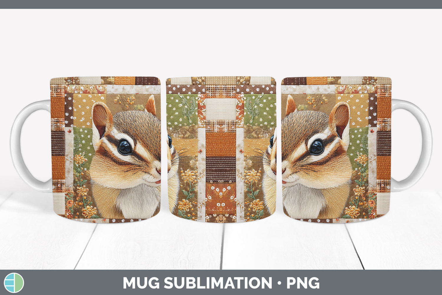 Similar Design Products to Chipmunk Woodland Quilted Patchwork Mug Wrap Sublimation Des
