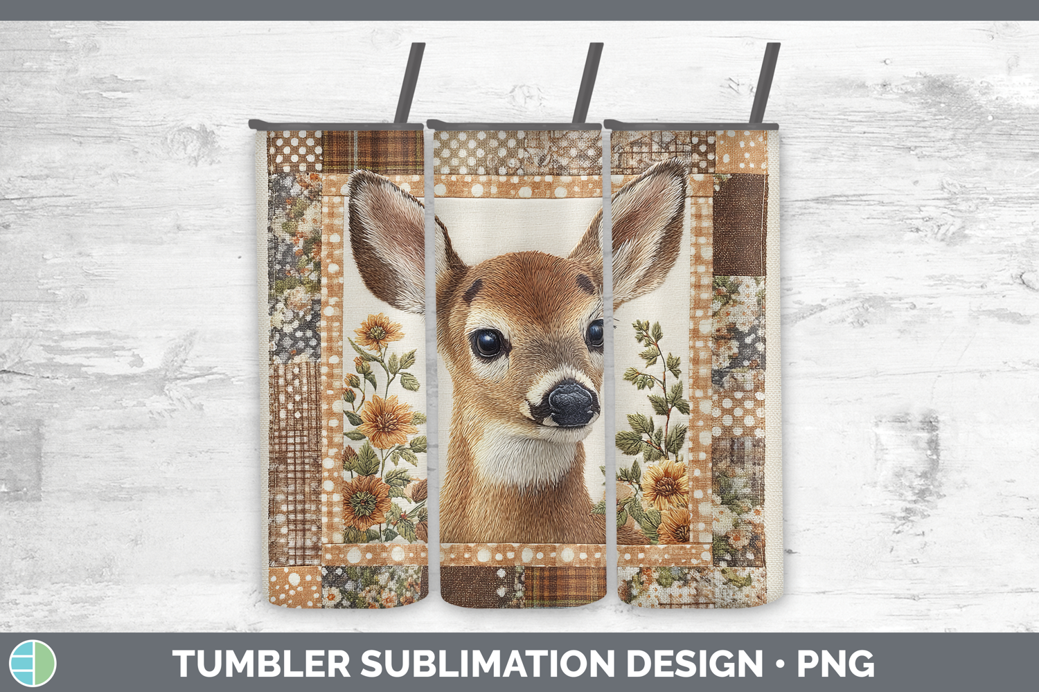 Deer Woodland Quilted Patchwork Tumbler Sublimation Design