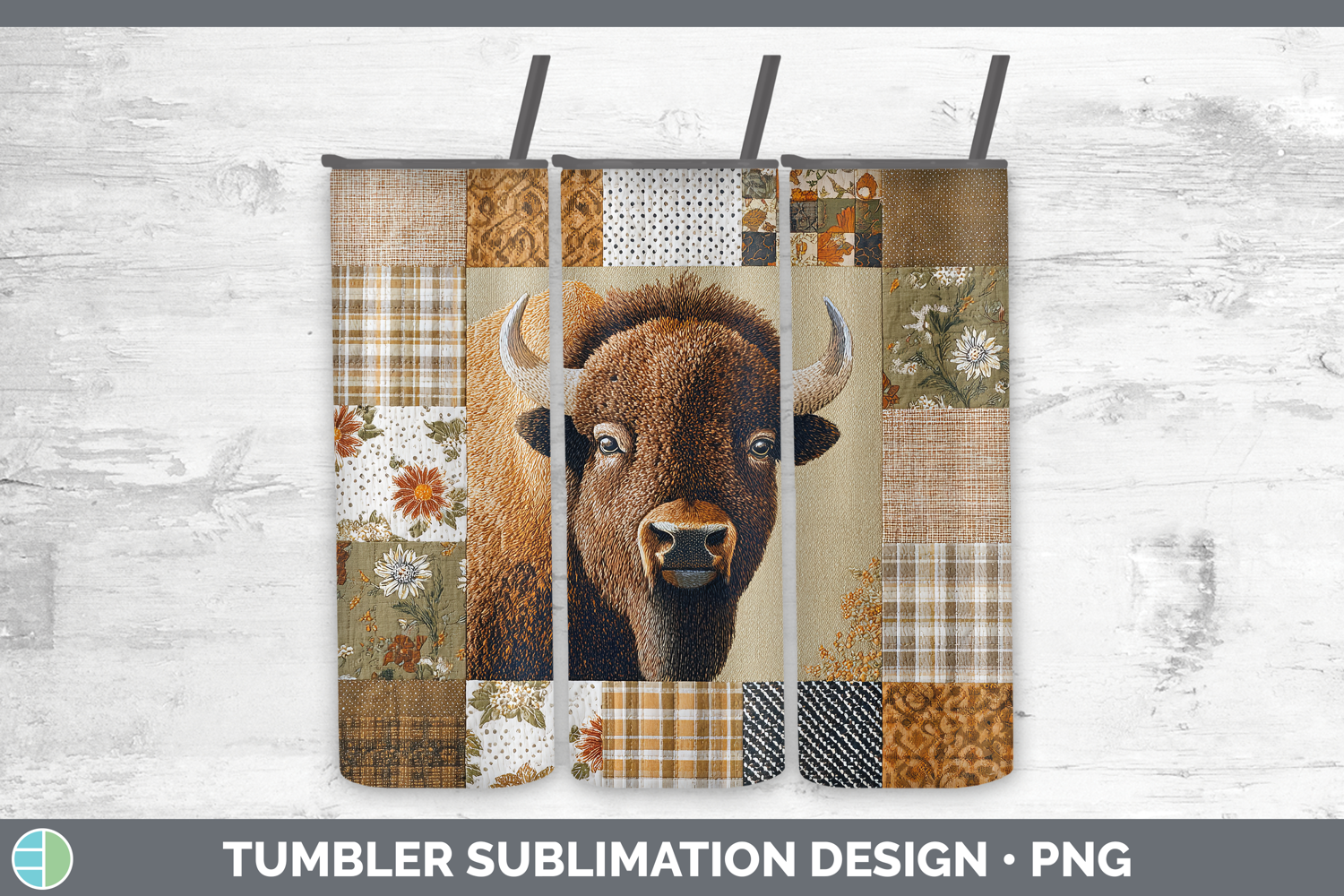 Similar Design Products to Bison Woodland Quilted Patchwork Tumbler Sublimation Design