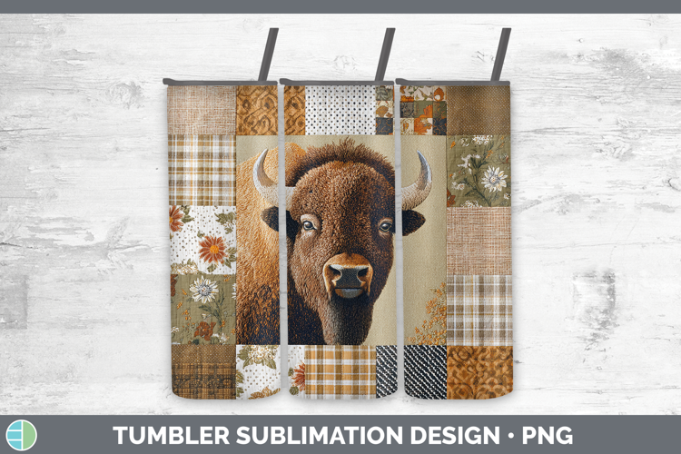 Bison Woodland Quilted Patchwork Tumbler Sublimation Design