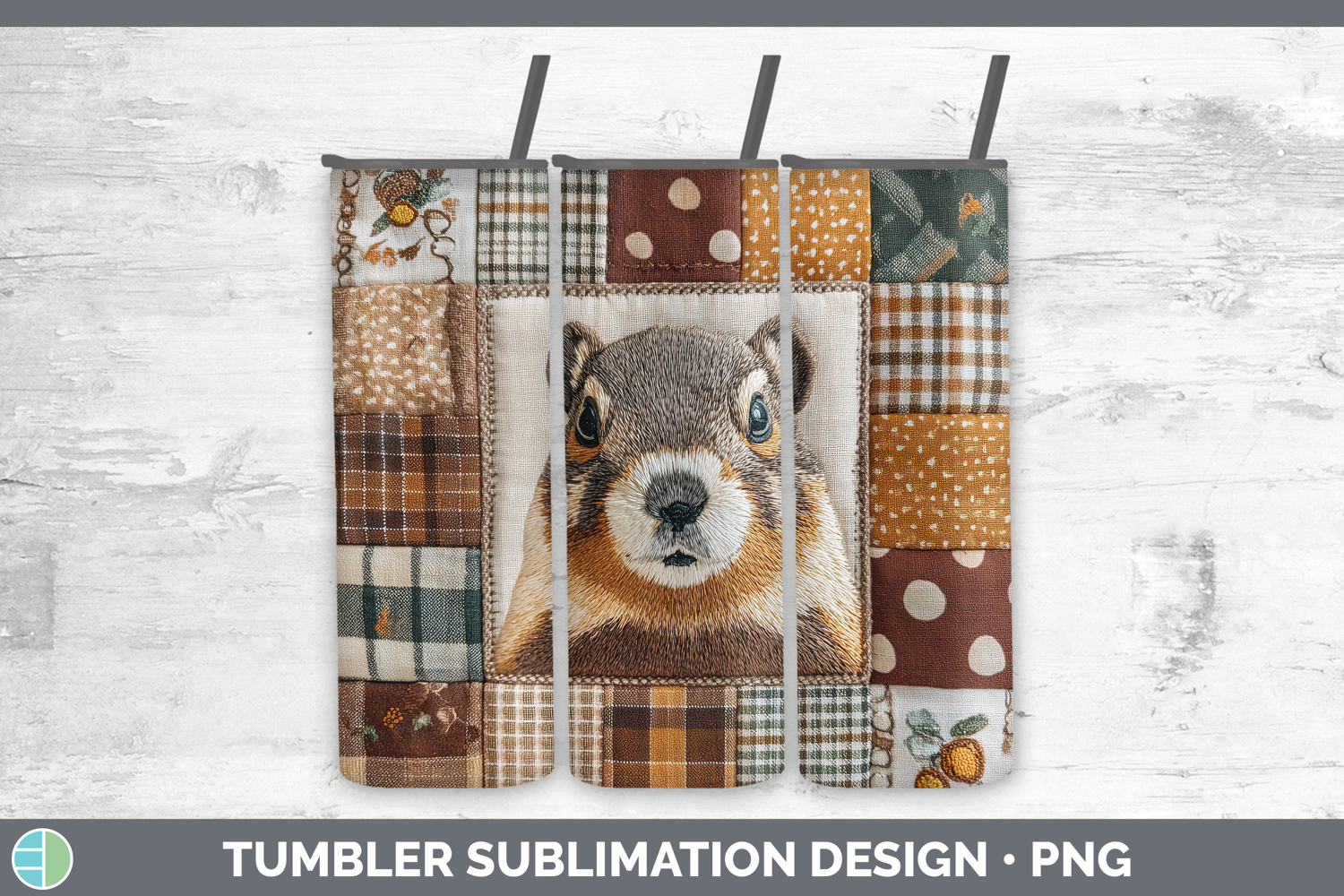 Similar Design Products to Groundhog Woodland Quilted Patchwork Tumbler Sublimation Des