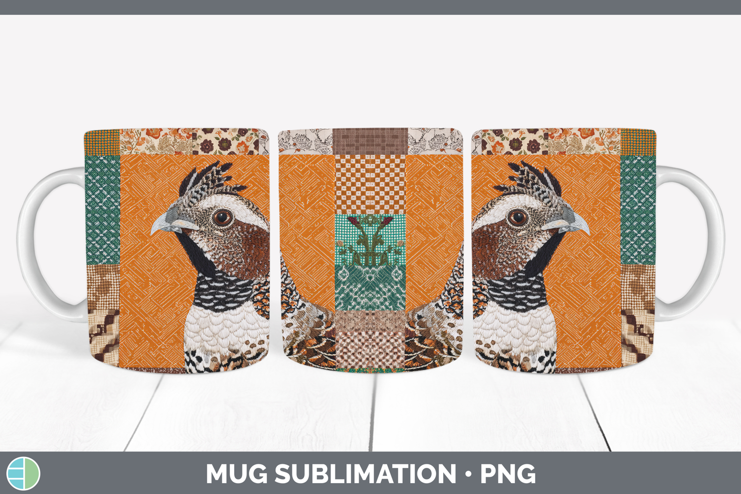 Similar Design Products to Grouse Woodland Quilted Patchwork Mug Wrap Sublimation Desig