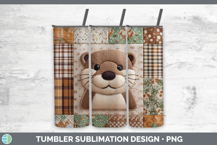Otter Woodland Quilted Patchwork Tumbler Sublimation Design