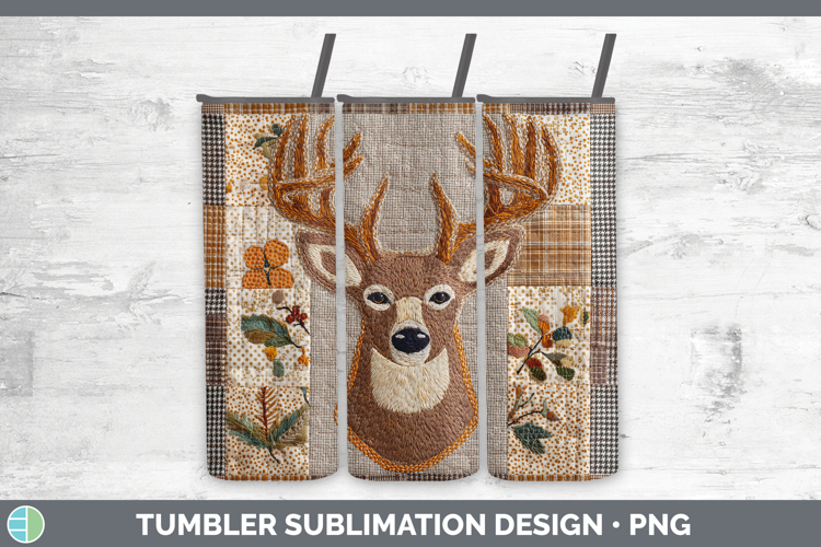Reindeer Woodland Quilted Patchwork Tumbler Sublimation Desi