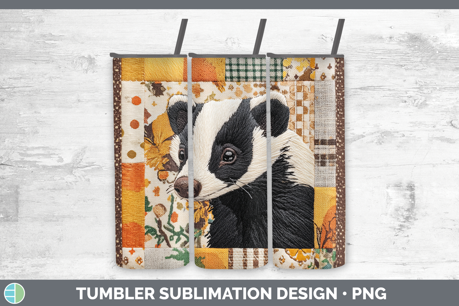 Similar Design Products to Skunk Woodland Quilted Patchwork Tumbler Sublimation Design
