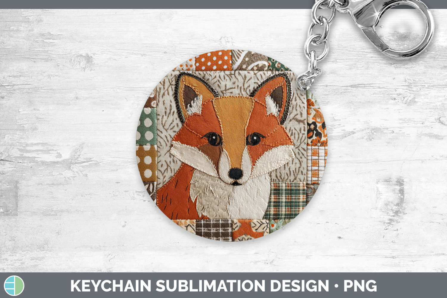 Fox Woodland Quilted Patchwork Keychain Sublimation Design