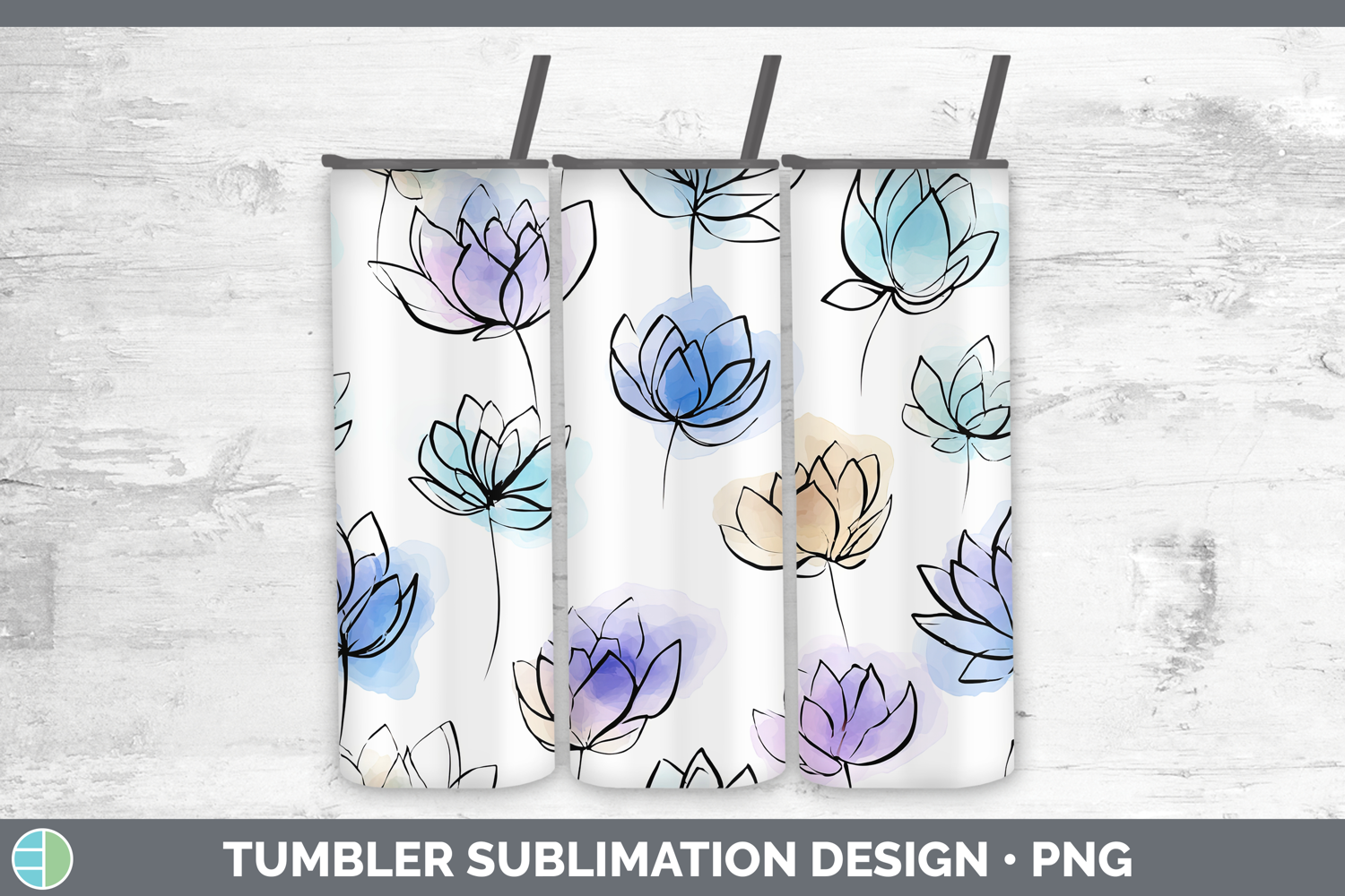 Lotus Flowers 01 Simple Tumbler Sublimation Design