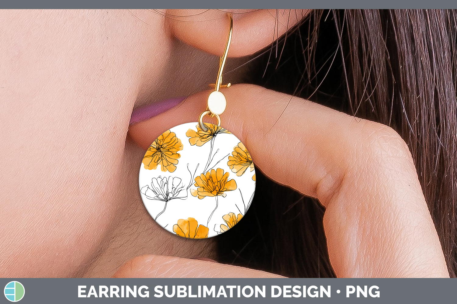 Marigold Flowers 01 Simple Round Earrings Sublimation Design