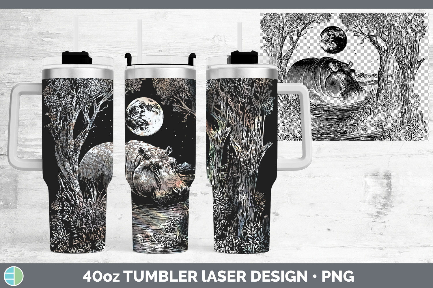 Hippo Safari Moon Laser 40oz Tumbler Sublimation Design