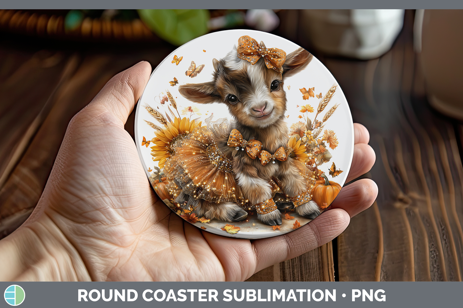 Goat Farm Cute Thanksgiving Round Coaster Sublimation Design