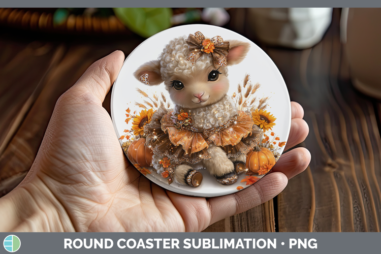 Sheep Farm Cute Thanksgiving Round Coaster Sublimation Desig