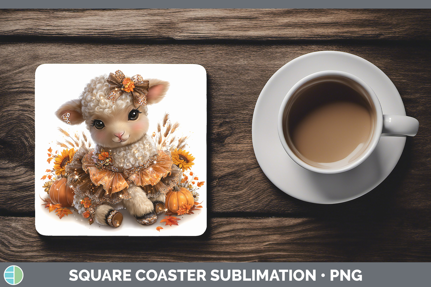 Sheep Farm Cute Thanksgiving Square Coaster Sublimation Desi