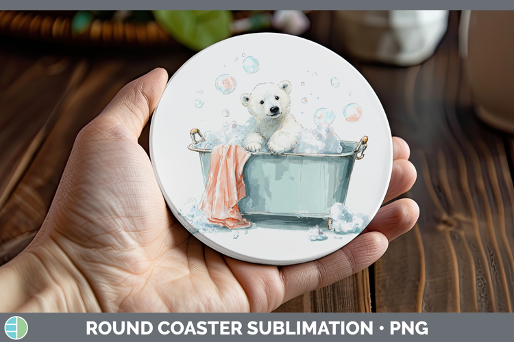 Polar Bear Safari Bathtub Round Coaster Sublimation Design