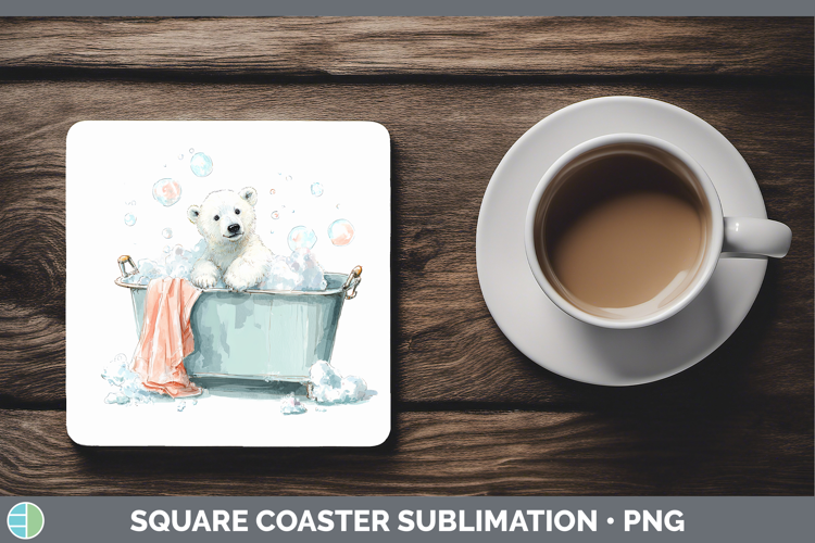 Polar Bear Safari Bathtub Square Coaster Sublimation Design
